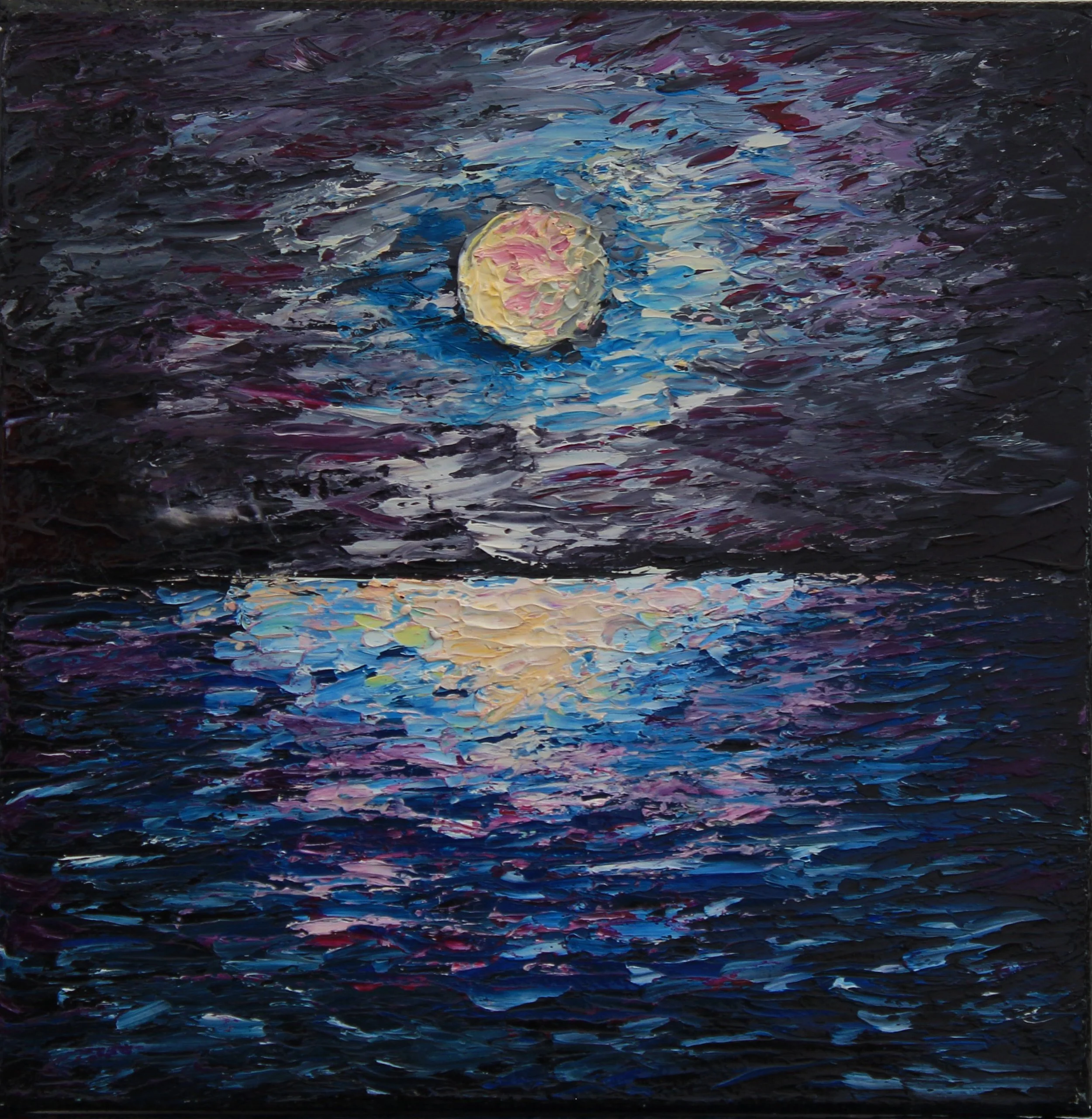 Great South Bay Moonlight, 2018, Oil on Canvas, 6 x 6 inches View fullsize