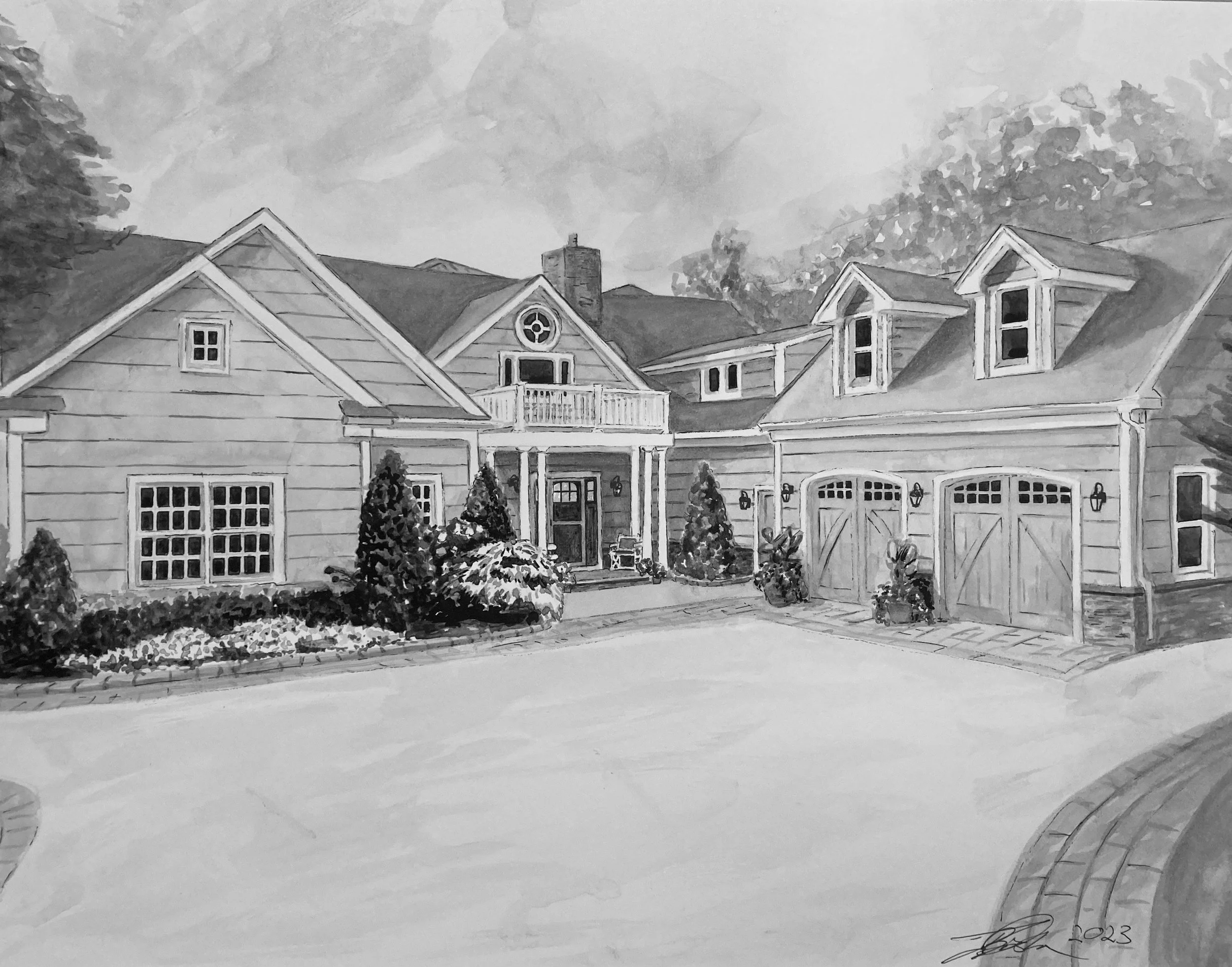 House #1_2/23, 2023, Pen & Ink on Bristol, 11 x 14 inches, Commission for Realtor